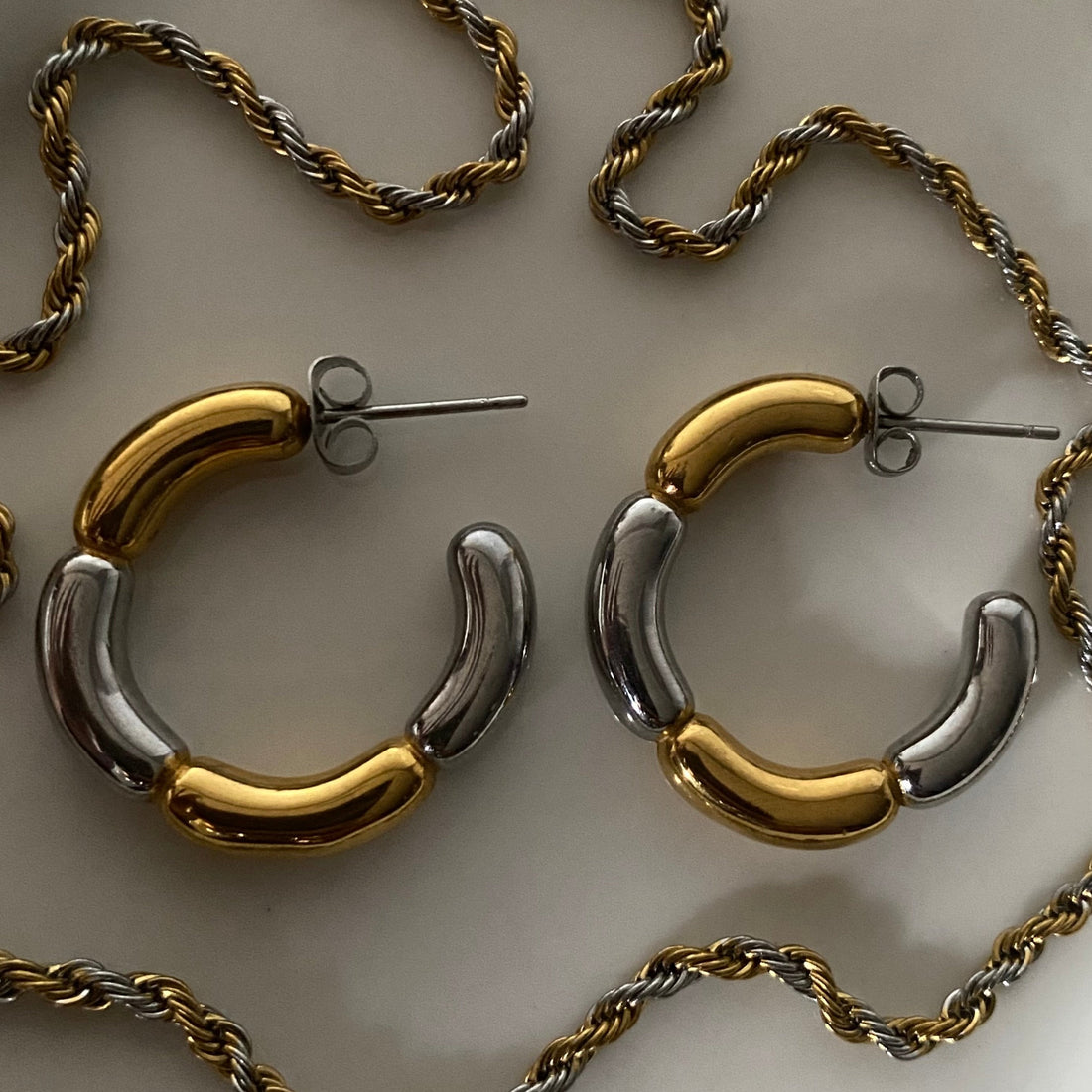 2-Tone Irregular Drip Hoop Earrings2-Tone Irregular Drip Hoop Earrings- Regular price