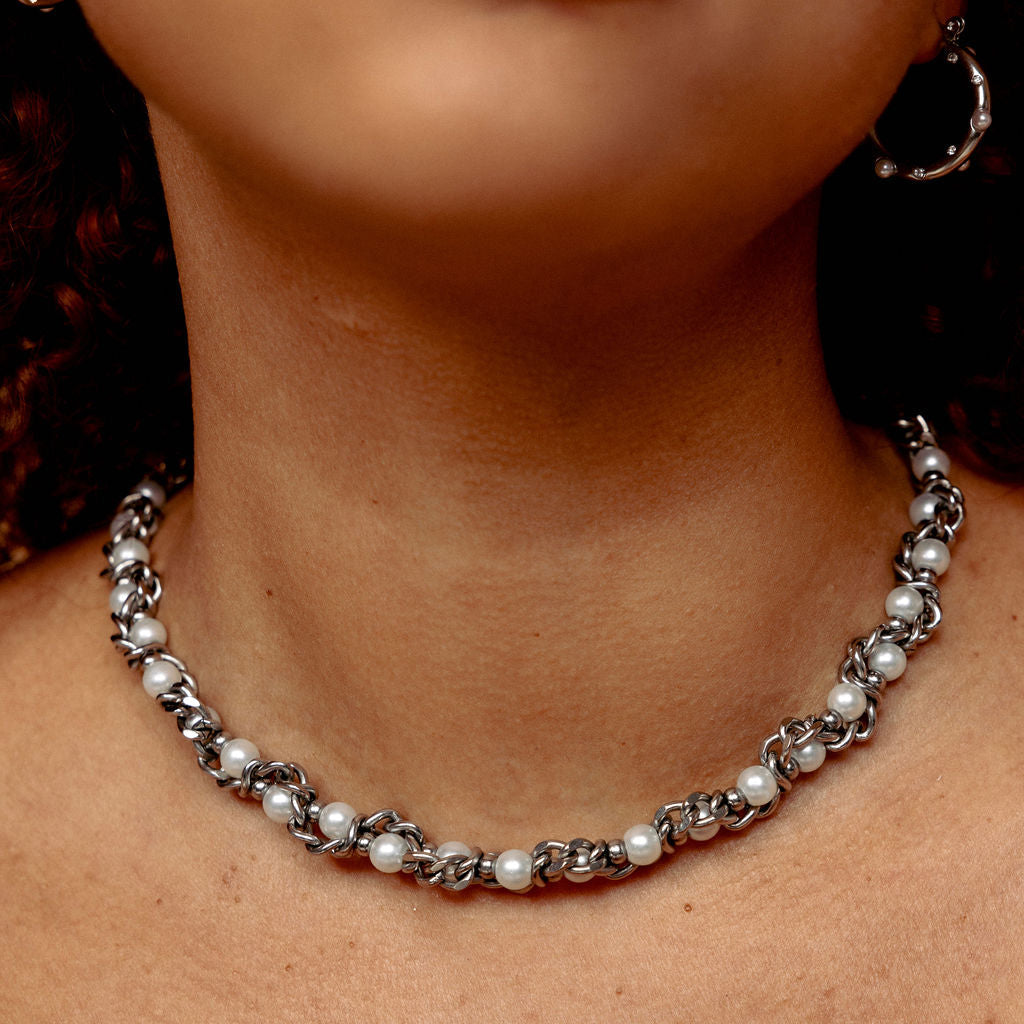 Freshwater Pearl Steel Baroque Chain NecklaceFreshwater Pearl Steel Baroque Chain Necklace- Regular price