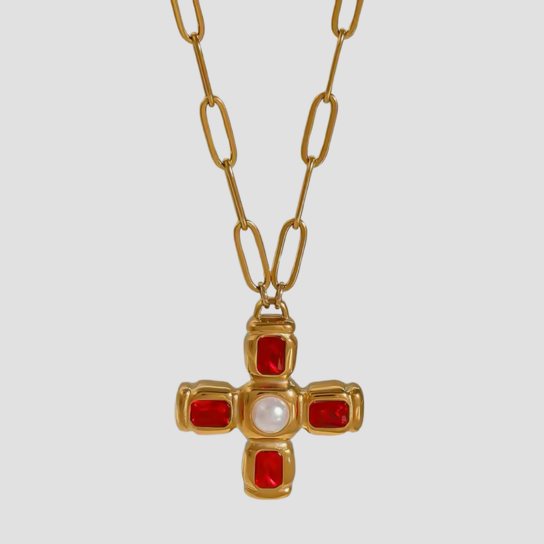 Perlita Ruby Stone Cross 18k Gold NecklacePerlita Ruby Stone Cross 18k Gold Necklace- Regular price