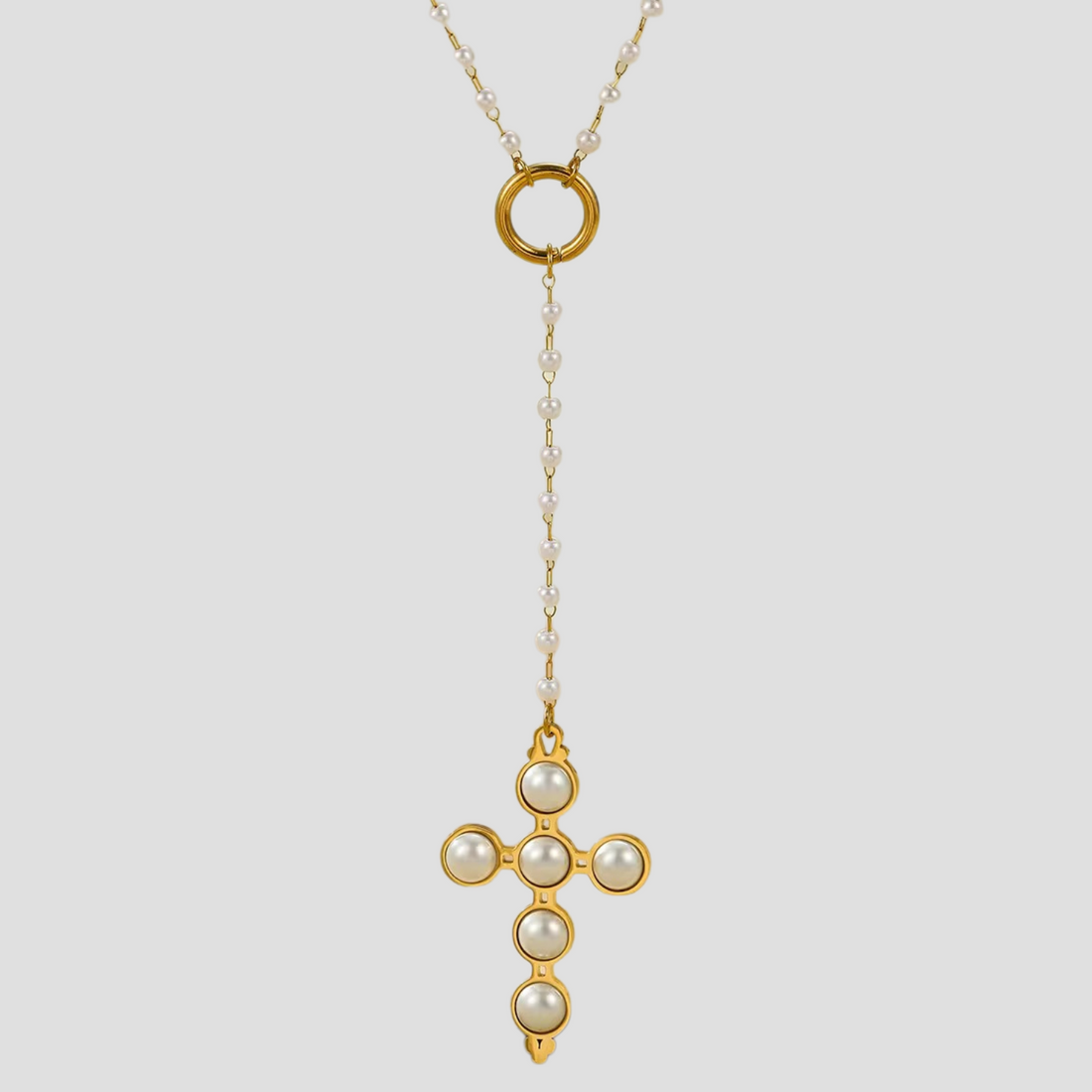 Perlita Rosary 18k Gold Cross Pendant NecklacePerlita Rosary 18k Gold Cross Pendant Necklace- Regular price