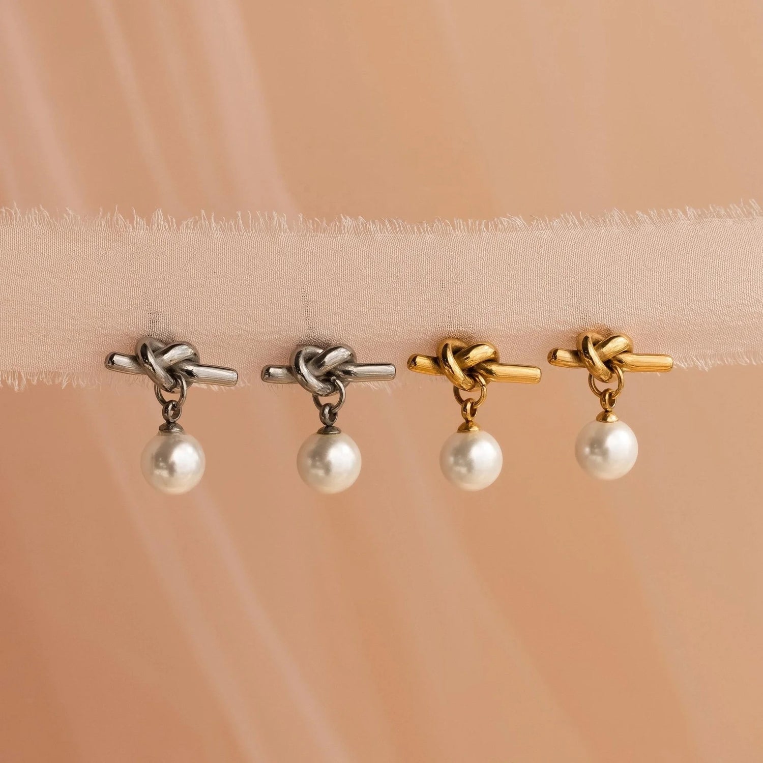Elevate your style with our Perlita Dangle Earrings, featuring a luxurious knot design in stunning 18k gold plating. Perfectly crafted for a glamorous evening out or to enhance your everyday elegance