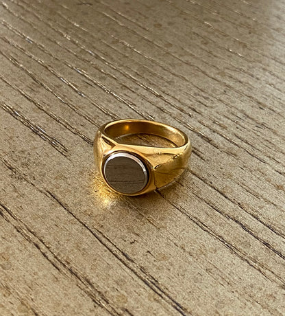 The Stainless Steel Circle Ring is a daring combination of timeless elegance and rebellious edge. Made from high-quality 18k gold plated stainless steel, this ring combines the opulence of gold with the strength of stainless steel.
