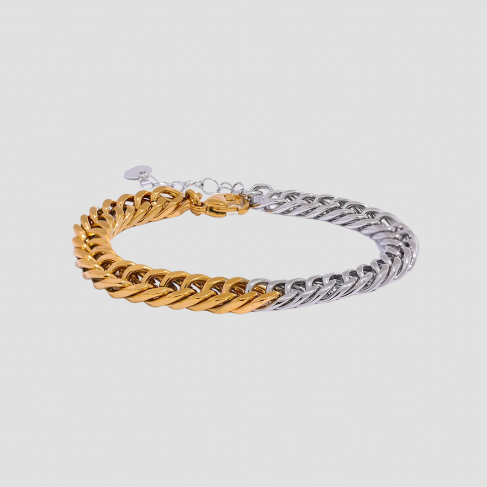 The 2-tone Link Bracelet showcases a unique two tone pattern, adding a touch of individuality to your ensemble. Experience comfort without worrying about skin irritations, thanks to its hypoallergenic design.