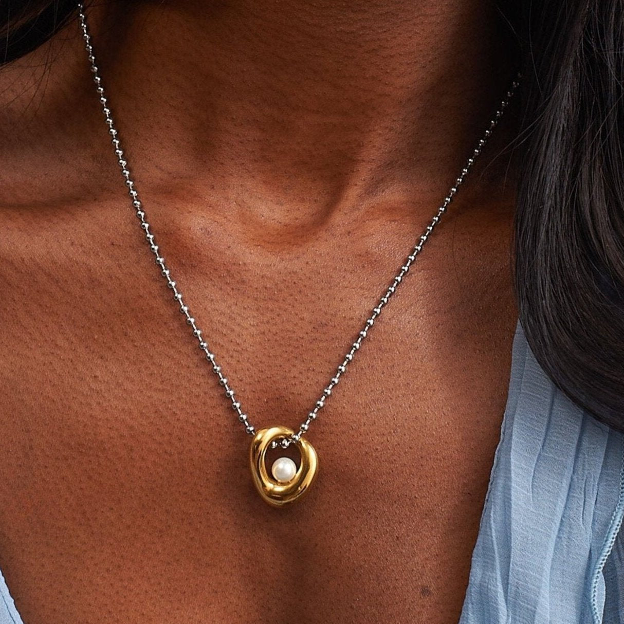 Our captivating Two-Tone Pearl Necklace is the perfect necklace to bring elegance to a simple outfit.