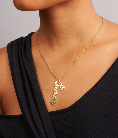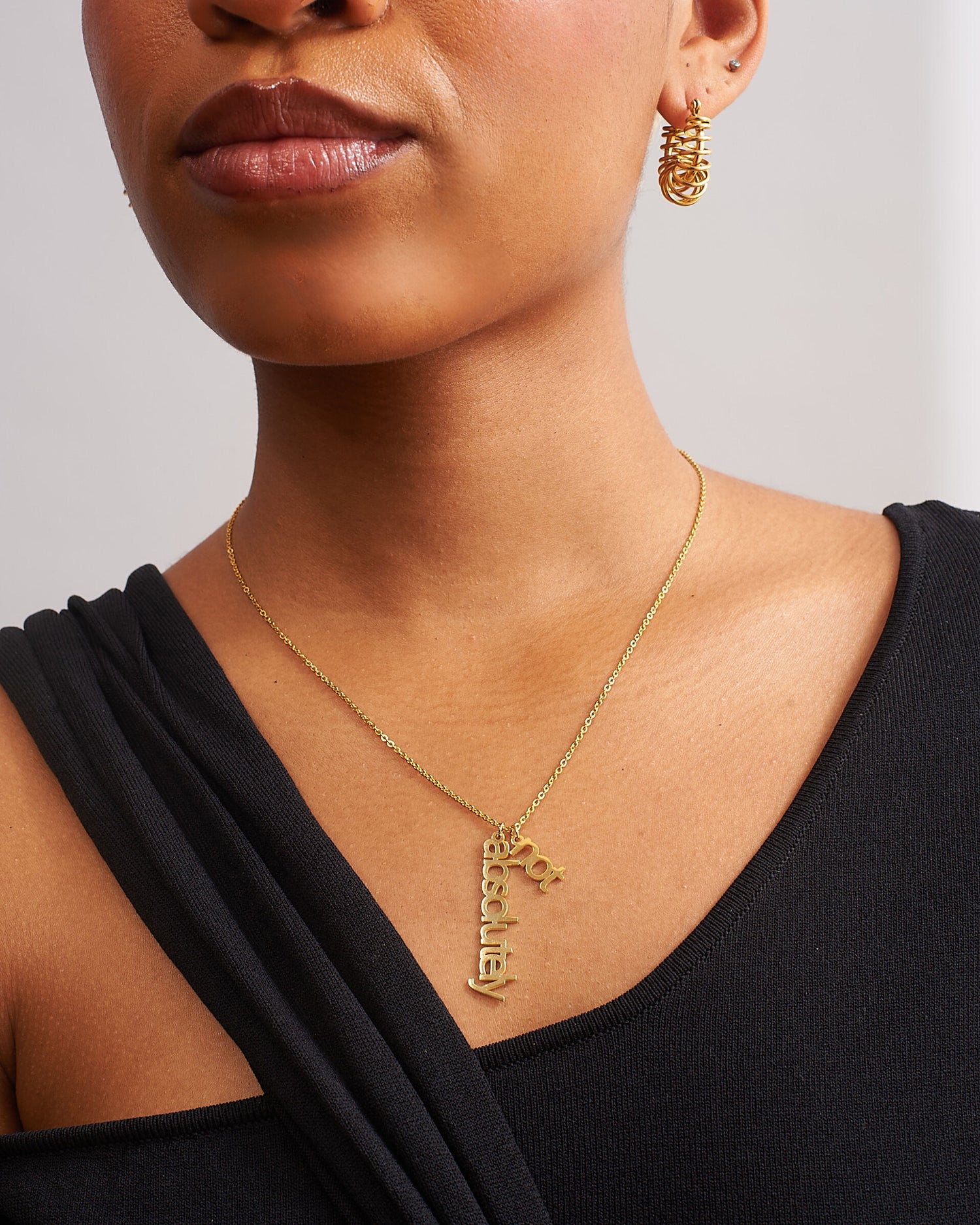 The 'Absolutely Not' Stainless Steel Necklace is a bold statement piece with attitude. Featuring the iconic phrase words “Absolutely” and “Not” as separate pendants, this sleek necklace is crafted from luxe 18k plated gold with a tarnish-free stainless steel base for durability and edge.