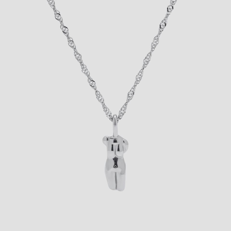 The "I Am Woman" Steel Necklace is a bold tribute to strength and femininity. Featuring a sculpted female torso pendant in high-quality stainless steel, this piece celebrates the beauty of the human form. The front showcases the curves of the female body, while the twisted rope chain adds a touch of elegance and edge.