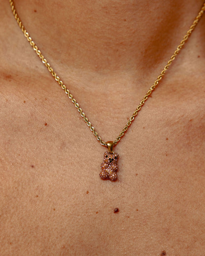 Iced Out Pink Teddy Bear Necklace