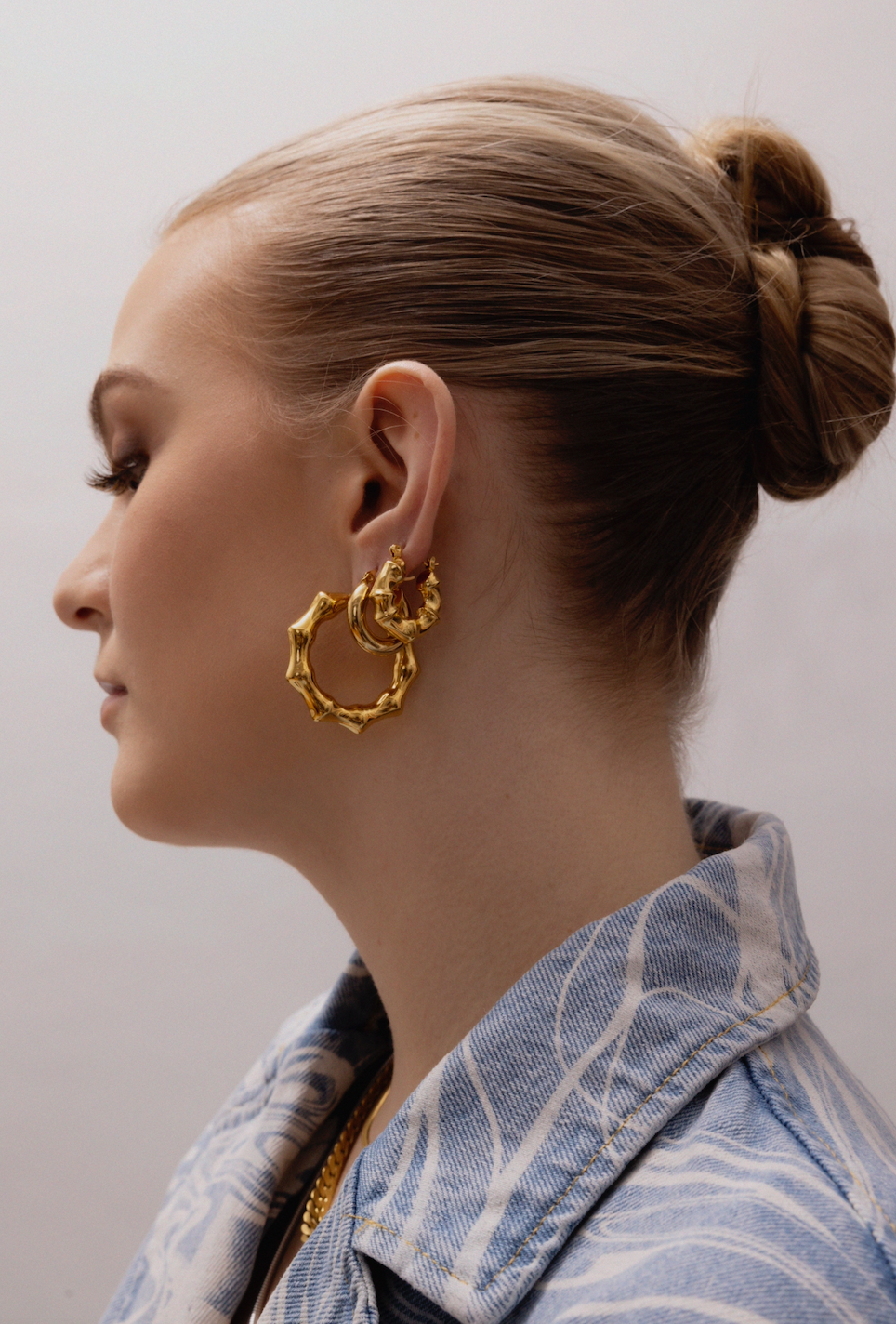 Bamboo 18k Gold Hoop Earrings - GRISÉ NYC 3