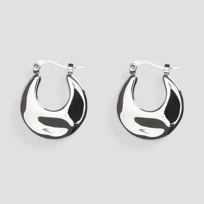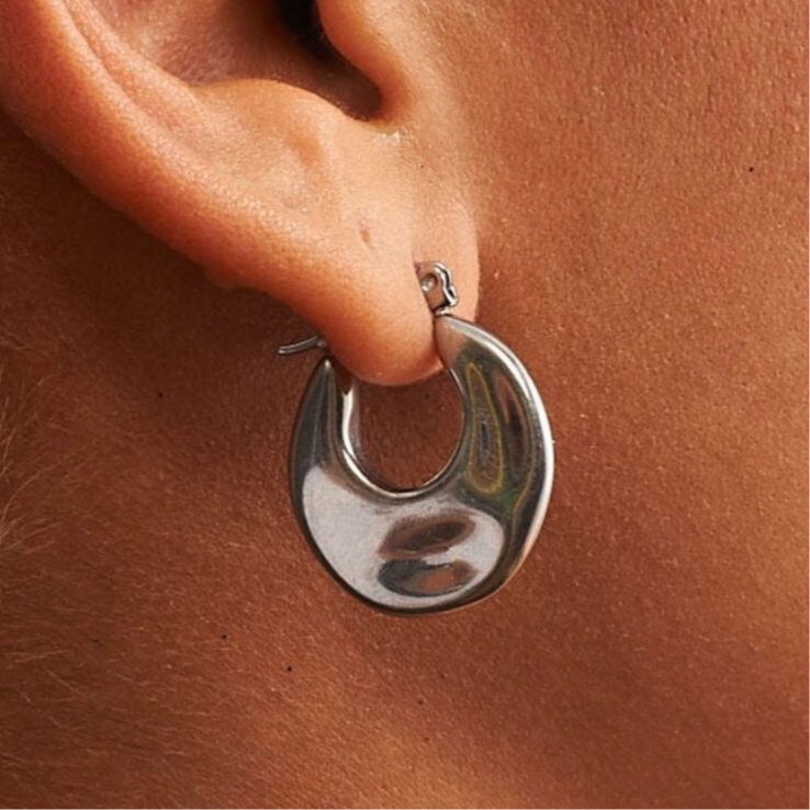 These Medium-sized Flat Hoop Earrings showcase a sleek hoop design, bringing a stylish touch of minimalism to any ensemble. They are hypoallergenic, ensuring compatibility with sensitive skin.