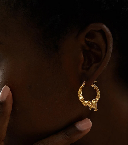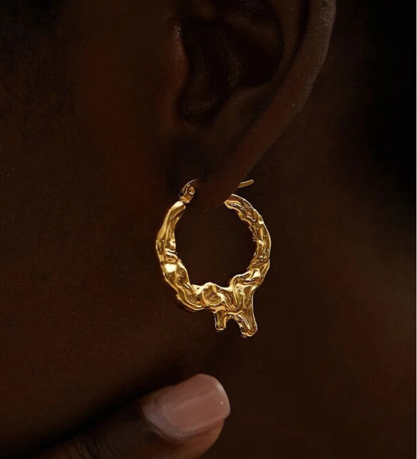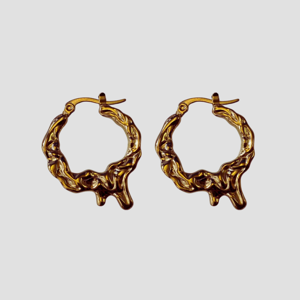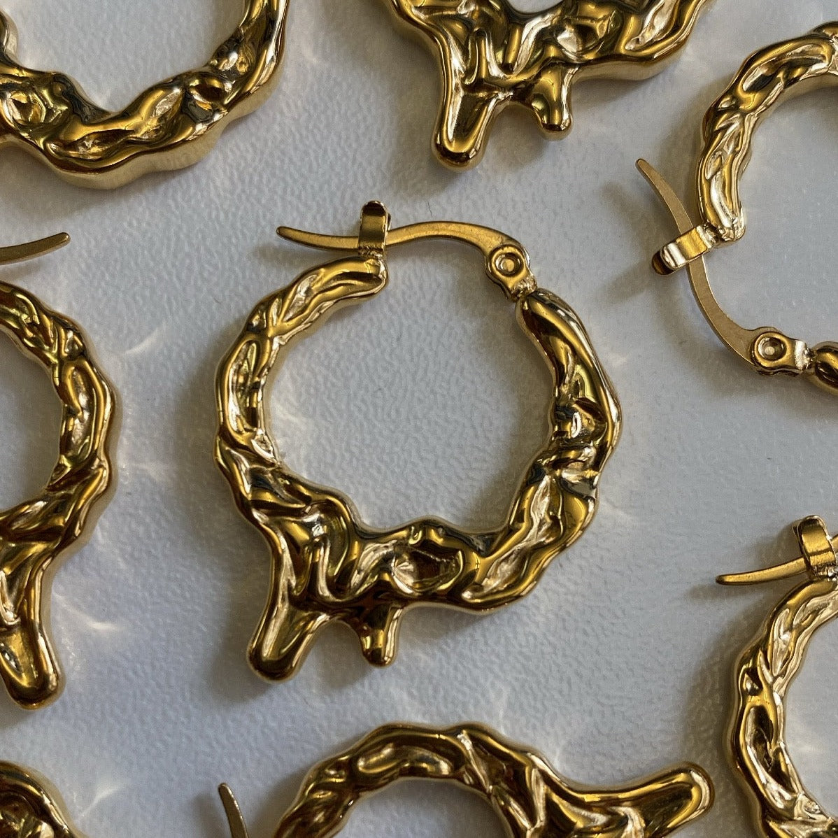 The ultimate drip mini hoop earrings featuring a raw drip design. Perfect worn alone or stacked for an edgy look.