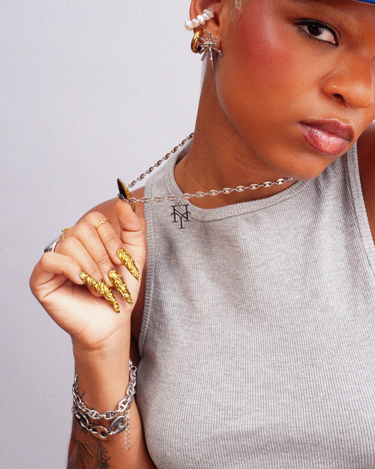Crafted with high-quality stainless steel and 18k gold-plated finishes designed for everyday wear. Our pieces are tarnish-resistant, durable, and made to maintain their shine with minimal upkeep.