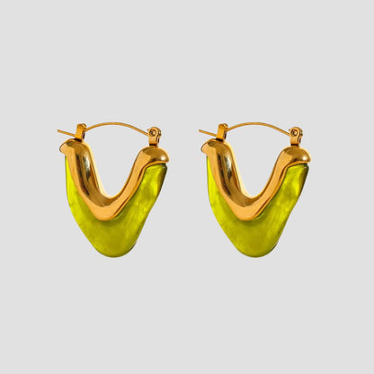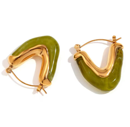 The Olive Resin V-Shape 18k Gold Earrings is where edgy meets luxe. Crafted in sleek 18k gold, these earrings feature a sharp V-shape with bold olive resin inlay that gives them a cool, contemporary vibe. The mix of polished gold and rich resin adds depth and attitude, making them the perfect statement piece.