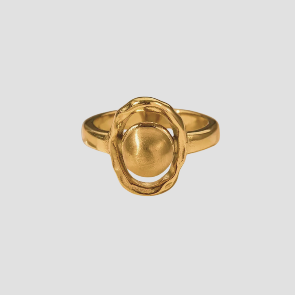 The sleek, polished finish of the gold enhances its contemporary feel, while the subtle design adds an element of depth and sophistication. Ideal for the woman who seeks a unique, statement-making piece, the Saturn Ring brings an effortlessly chic, otherworldly touch to any outfit, effortlessly blending luxury with cosmic allure.