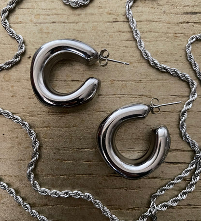 Featuring an exclusive irregular design, these Midi Bold Earrings infuse a hint of edginess into any ensemble. They are not only hypoallergenic but also resistant to tarnishing, ensuring both their durability and comfort.