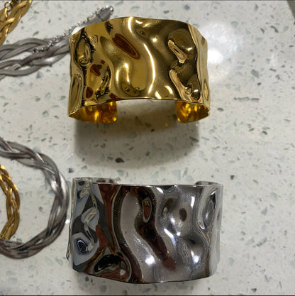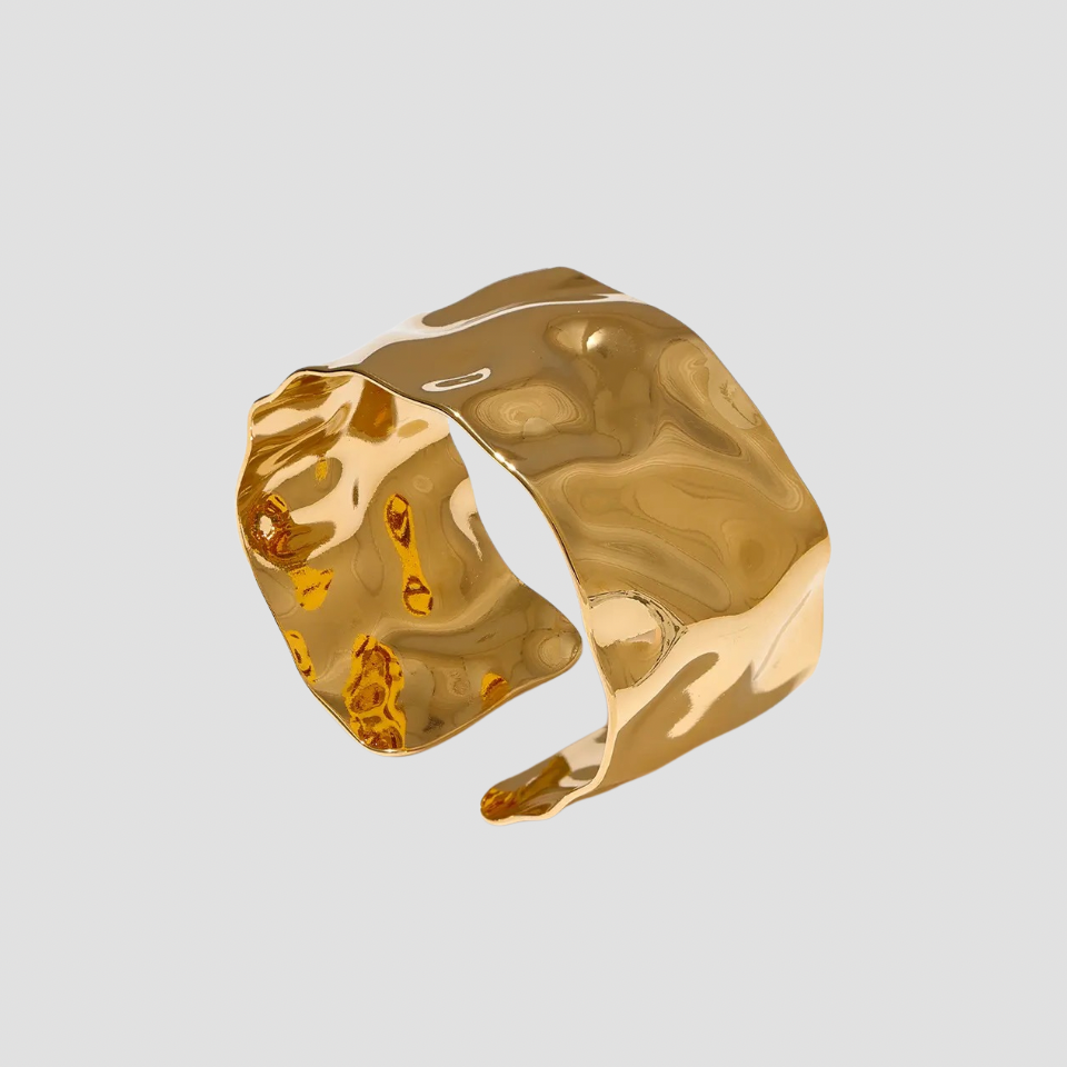 Our Gold Cuff Bracelet features a bold hammered design for a classy look. It's hypoallergenic, making it comfortable for sensitive skin.