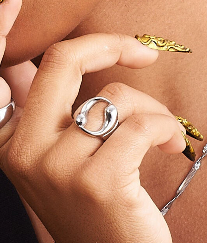 Striking yet subtle, this ring is more than an accessory—it’s a statement of equilibrium and individuality. Perfect for wearing solo or stacking for extra impact, it’s the go-to piece for those who embody effortless cool with a deeper edge.