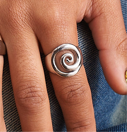 The Swirl Stainless Steel Ring is an elegant testament to fluid, contemporary design. Crafted from sleek stainless steel, its graceful swirl motif wraps around with a sculptural, almost organic movement, embodying modern sophistication.