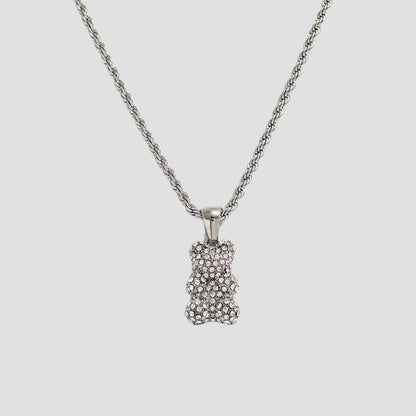 Its versatile design makes it ideal for layering with other necklaces or wearing as a standout piece on its own, perfect for adding a quirky, fashionable element to both casual and evening looks. The Teddy Bear Stainless Steel Necklace is for those who love to make a statement with a playful twist on luxury.