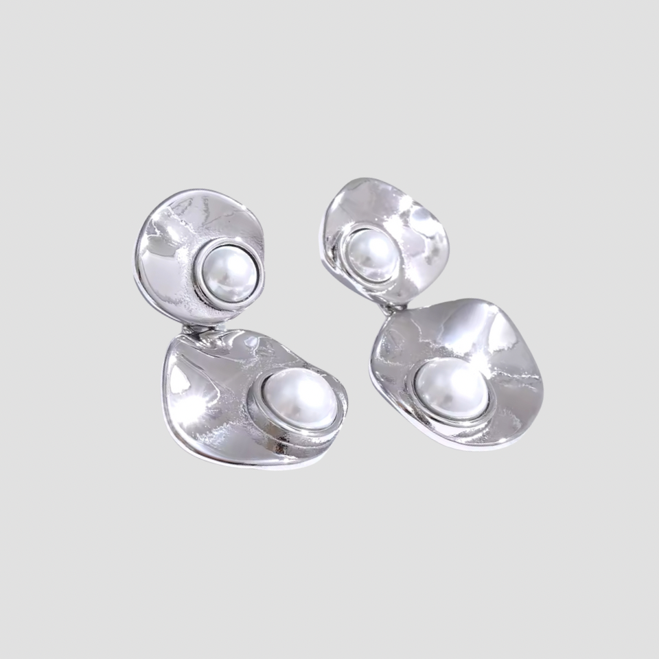 Textured Double Pearl Stainless Steel Earrings - GRISÉ NYC 1